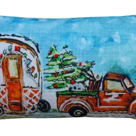 Hand Illustrated Christmas Caravan Holiday Pillow (14″ x 20″) | Decorative Sofa Pillow | Cozy Holiday Decor