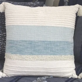 Designer Striped Pillow with Mini Poms and Tassels 20″x20″ – Cozy and Stylish Home Decor