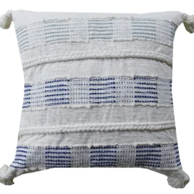 Elegant Blue & White Throw Pillow Cover 22″ X 22″ with Insert – Hand Woven & Embroidered | Decorative Accent for Couch | Indoor Use