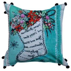 Hand Illustrated Christmas Holiday Pillow with Stocking Design – 18″x18″ Decorative Accent for Festive Home Decor