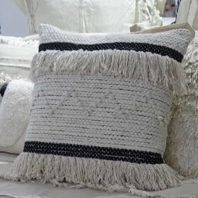 Elegant Large Throw Pillow 22″ x 22″ for Couch – Handloom Woven Decorative Pillow with Tassels
