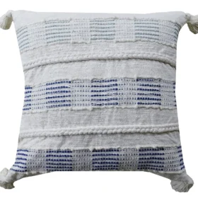 Elegant Blue & White Throw Pillow Cover 22″ X 22″ with Insert – Hand Woven & Embroidered | Decorative Accent for Couch | Indoor Use