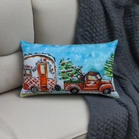 Hand Illustrated Christmas Caravan Holiday Pillow (14″ x 20″) | Decorative Sofa Pillow | Cozy Holiday Decor