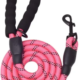 Get Control and Style with the 5 FT Thick Highly Reflective Dog Leash-Pink
