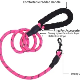 Get Control and Style with the 5 FT Thick Highly Reflective Dog Leash-Pink