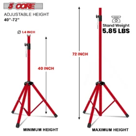 5Core Adjustable Speaker Stand Tripod – 72 Inch Tall Heavy-Duty DJ Pole Mount Studio Monitor Stands – Red, 2 Pack
