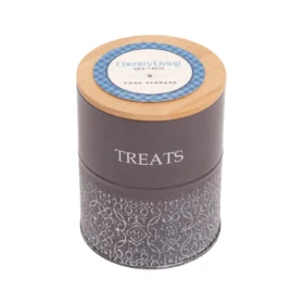 Elegant & Durable Set of 2 Volcanic Gray Carbon Steel Dog Treat Containers | Stylish Pet Treat Canisters for Modern Homes