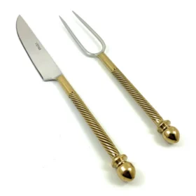 Premium Stainless Steel Carving Knife and Fork Set – Elegant Golden Swirl Handles, Handmade by Artisans, Gift Box Included