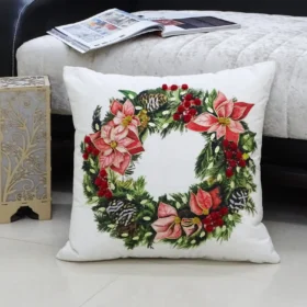 Christmas Wreath Holiday Decorative Pillow (18″x18″) – Add Festive Charm to Your Home