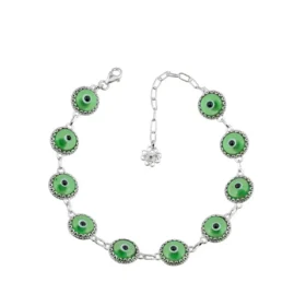 Multi Color Evil Eye Sterling Silver Adjustable Link Bracelet for Women – Handcrafted Protection & Style