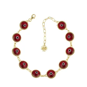 Red Evil Eye Gold Plated Silver Bracelet for Women – Protective Amulet with 10 Beads