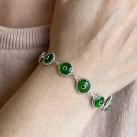Multi Color Evil Eye Sterling Silver Adjustable Link Bracelet for Women – Handcrafted Protection & Style