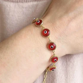 Red Evil Eye Gold Plated Silver Bracelet for Women – Protective Amulet with 10 Beads