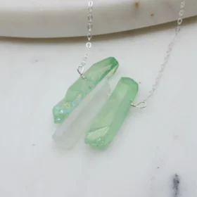 Elegant Silver Necklace with Green and White Titanium Quartz – 16″ | Hypoallergenic & Handmade in Sausalito, CA