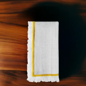 Elegant Table Cloth Napkins Set of 4 with Yellow Embroidery – 100% Cotton, 20″ x 20″