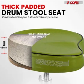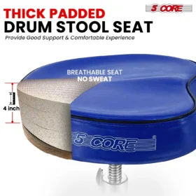 5 Core Drum Throne – 4″ Padded Adjustable Musician Stool for Drummers, Guitarists Heavy-Duty, Ergonomic Music Chair