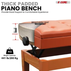 5 Core Duet Piano Bench – 3.5 Inch Cushioned Stool with Storage, Adjustable Wooden Heavy Duty Musician Chair – Ideal for Professional and Home Use