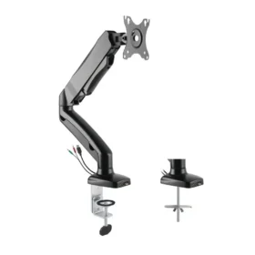 Rocelco Premium Desk Monitor Mount with USB 2.0 & Audio Port | Full Motion Adjustable Arm | Fits 13”-27” LED LCD Flat Screens | Black