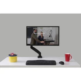 Rocelco Premium Desk Monitor Mount with USB 2.0 & Audio Port | Full Motion Adjustable Arm | Fits 13”-27” LED LCD Flat Screens | Black