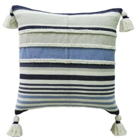 Vibhsa Handwoven 20″x 20″ Slub Textured Stripe Pillow with Tassels Cozy Rustic Charm