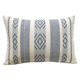 Luxury Jacquard Woven Decorative Throw Pillow 14” X 20” Navy and Ivory | 100% Cotton