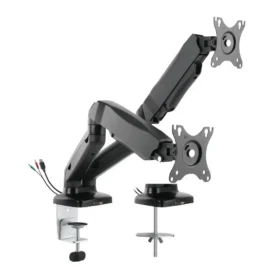 Rocelco Premium Double Monitor Desk Mount – USB 2.0, Audio Port, Pneumatic Adjustable Arm, Fits 13″-27″ Screens, Grommet & C Clamp – Black