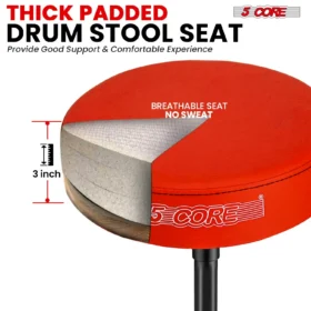 5 Core Drum Throne – 3″ Thick Padded Comfortable Guitar Stool Drummer Chair, Adjustable Musician Seat for Long Sessions