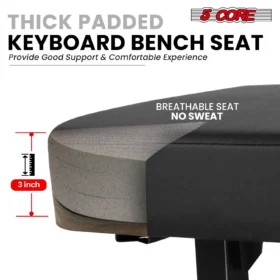 5CORE Height Adjustable Keyboard Bench Piano Stool – Thick Padded Seat, Heavy-Duty Music Chair for Professional and Beginner Musicians