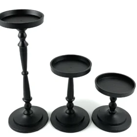 Vibhsa Elegant Matte Black Pillar Candle Holder Set of 3 – Versatile Home Decor