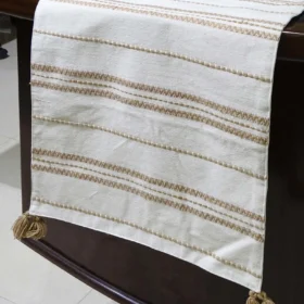 Elegant Embroidered Cotton Table Runner – Beige Off-White, 16″x90″ – Enhance Your Dining Table Decor