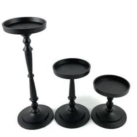 Vibhsa Elegant Matte Black Pillar Candle Holder Set of 3 – Versatile Home Decor