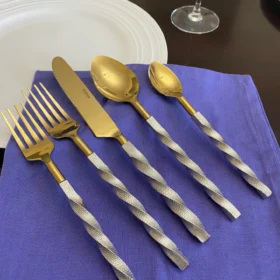 Luxurious Golden Stainless Steel Flatware Set – 5 Piece Twisted Design Silverware for Elegant Dining