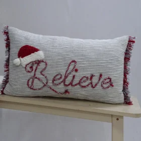 Festive Christmas Throw Pillow for Couch – Believe 14″ x 24″ – Holiday Decorative Accent Pillow