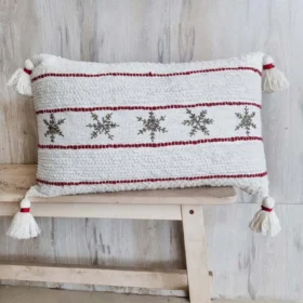 Handwoven Christmas Decorative Pillow with Beaded Snowflakes – 14″x 24″ – Perfect for Holiday Decor
