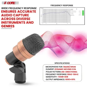 5 Core Snare Drum Microphone – Copper Finish, XLR Wired, Uni-Directional Tom Drum & Musical Instrument Mic