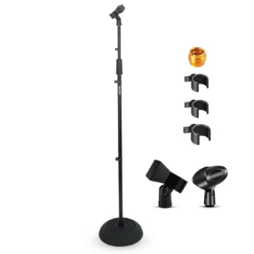 5Core Adjustable Desktop Mic Stand with Round Base – Universal Desk Microphone Holder with Boom Arm