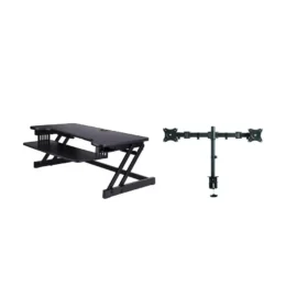 Rocelco 37.5″ Deluxe Height Adjustable Standing Desk Converter with Dual Monitor Mount Bundle – Ergonomic Sit-Stand Workstation