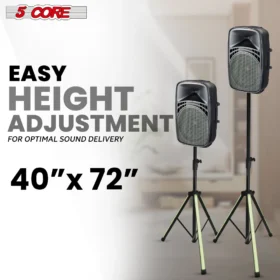 5 Core Adjustable Heavy Duty PA DJ Tripod Speaker Stand Pair with 35mm Insert Professional Audio Support, Durable Construction, Up to 72 Height, 132 lbs Capacity
