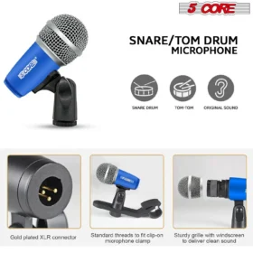 5 Core Tom Snare Mic – Cardioid Dynamic Microphone with Copper Finish for Drum Kit Precision Instrument