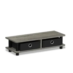 Furinno Turn-N-Tube Monitor Stand – French Oak Grey/Black Ergonomic Desk Organizer with Storage Bins for Efficient Workspace