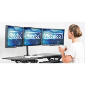 Rocelco Premium Triple Monitor Desk Mount – Adjustable Full Motion Arms – VESA Compatible for 13″ to 27″ Screens – Black