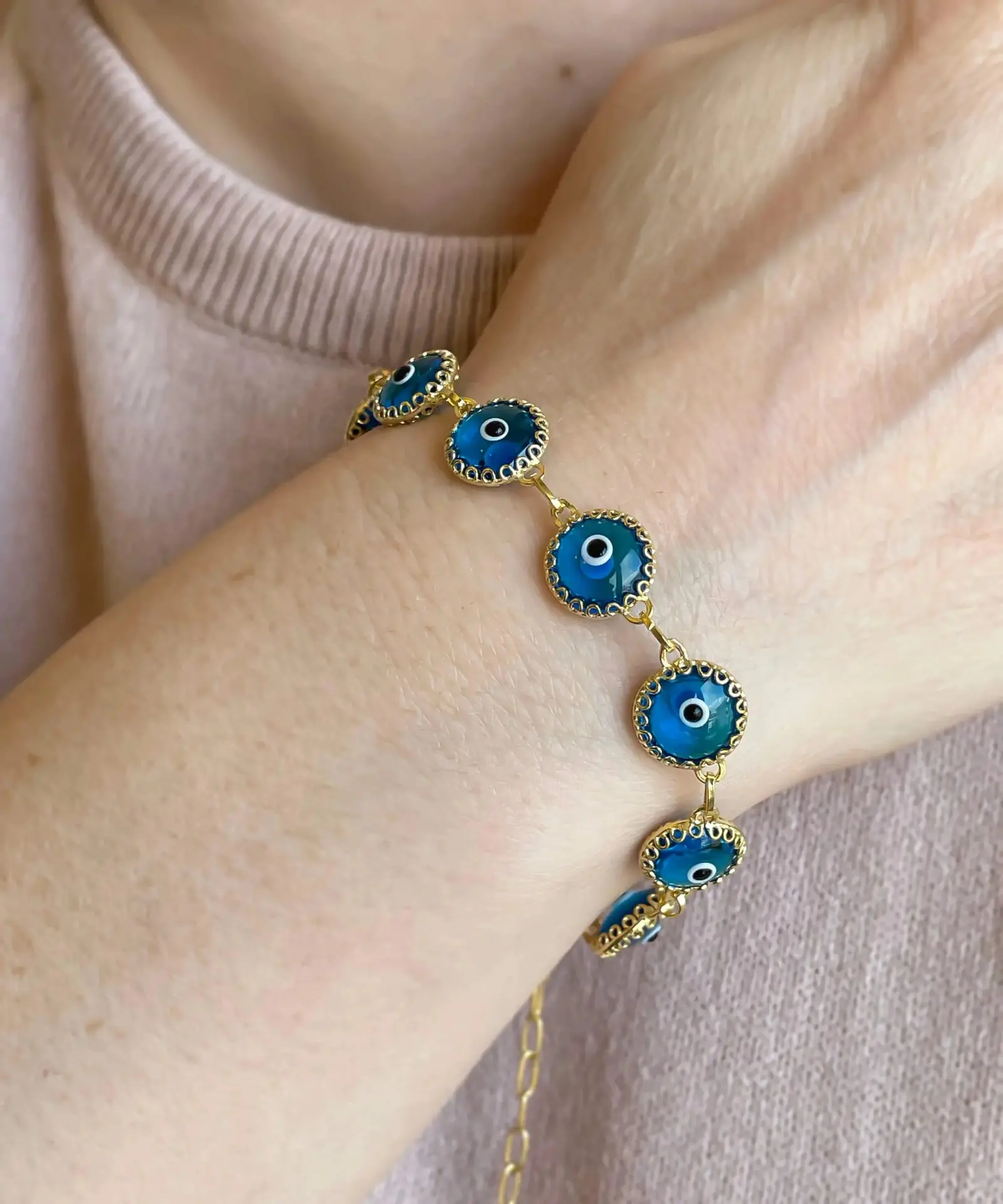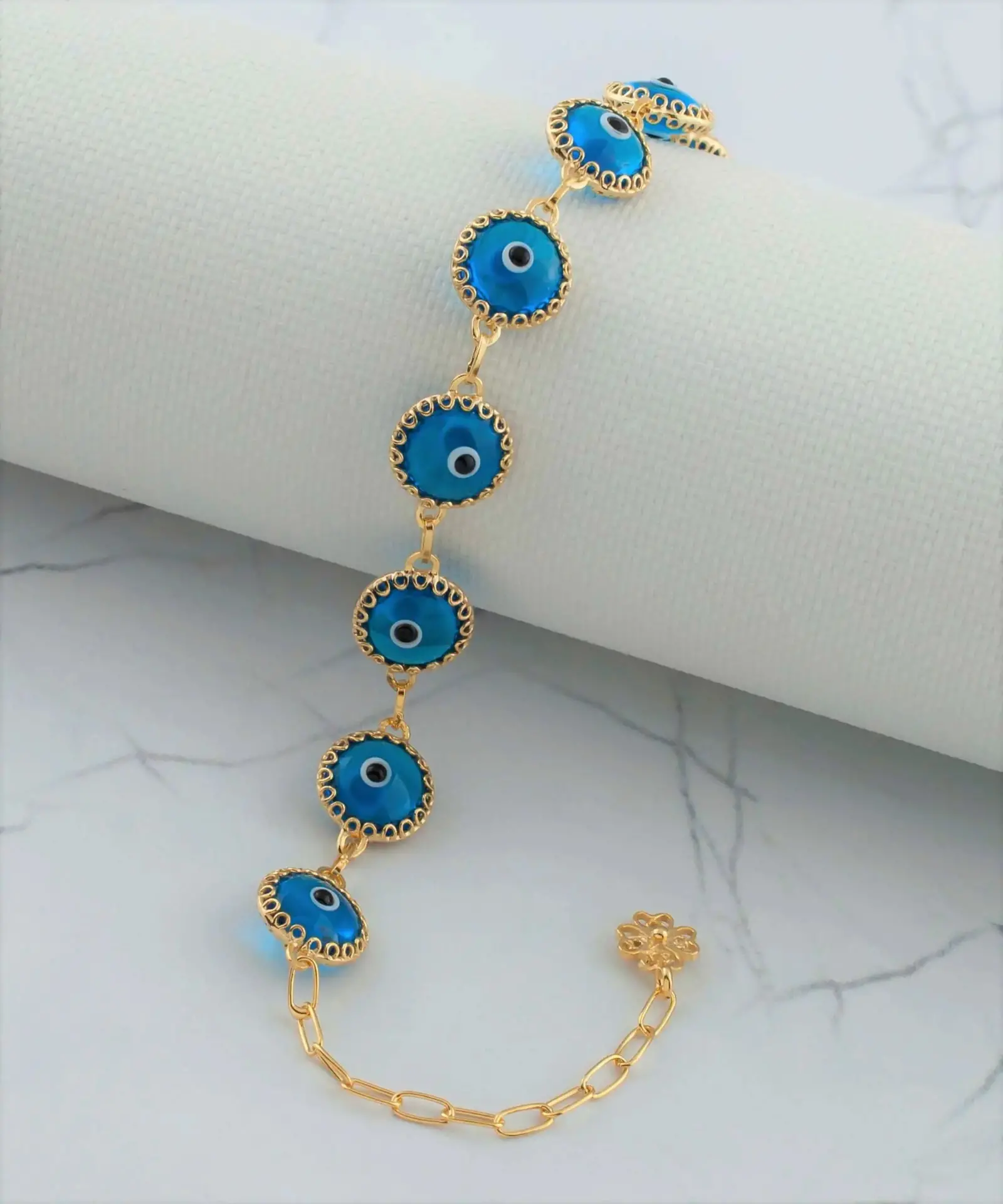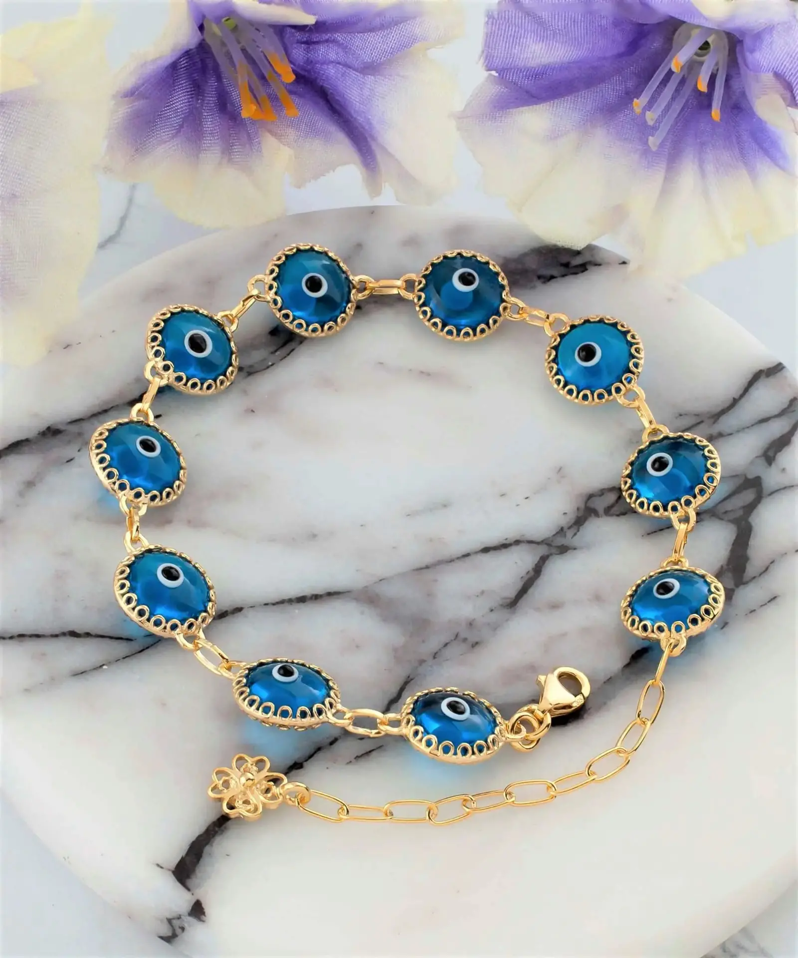 - Features a strong rolo chain with 10 beautifully crafted lapis blue evil eye beads