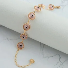 Introducing our beautifully crafted 10 Beads Mint Green Evil Eye Women Gold Plated Silver Link Bracelet, designed to combine fashion with ancient symbols of protection. This exquisite bracelet features: