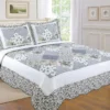 Assembled from an intriguing mix of contemporary and retro fabrics, this quilt set delivers authentic patchwork styling. Featuring a diverse palette to coordinate with a variety of colors, and distinctive channel quilting, this set reverses to coordinating decorative stripe. Oversized for better coverage on today’s deeper mattresses.