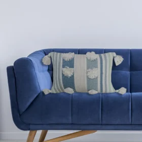 Add a pop of color and texture to your sofa or bed with this eye-catching blue throw pillow. The pom pom detailing adds a playful touch, making it a great decorative accent for any room. Whether you’re looking to update your living room or bedroom decor, this pillow is a perfect choice.
