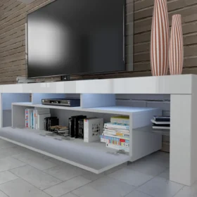 Diuna tv stand 145 2D1K / 56,9 in white / white gloss / black leg