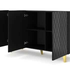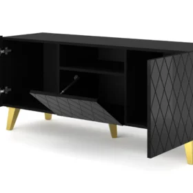 Diunais an elegant collection for the living room, which is characterized by high quality and a luxurious look. The furniture has impressively decorated high-gloss fronts. Modern design has been supplemented with classic colors, which provides great arrangement possibilities. The furniture is placed on stylish legs. The TV cabinet from the collection has three doors and an open shelf.