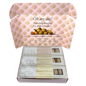 Step into Bonne et Filou’s own Versailles Chateau, where the world’s most exquisite advent calendar awaits your beloved pups. Designed exclusively for your four-legged companions, this holiday treat extravaganza is perfect for dogs on your Good List!