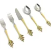 Introducing our Stainless Steel Golden Flatware 20-Piece Set with Leaf Style Design a captivating blend of elegance and nature-inspired beauty, perfect for both everyday dining and special occasions.