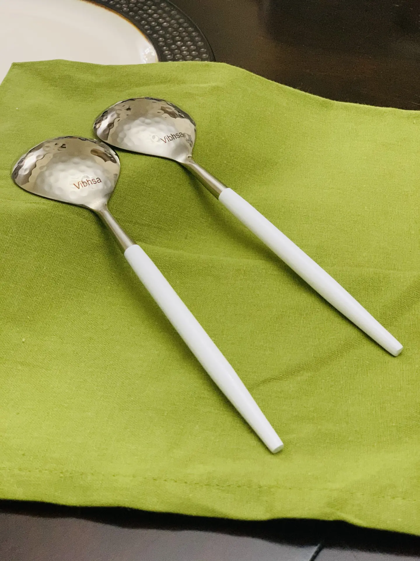 Add an elegant touch to your dining room with our Vibhsa 6-PC Tablespoon Serving Set for 6. Whether you prefer a gold silverware set, black flatware set, or modern flatware, we have the perfect option for you. Designed to add sophistication to both formal dinner settings and casual meals, this artisan cutlery set is a true statement piece.